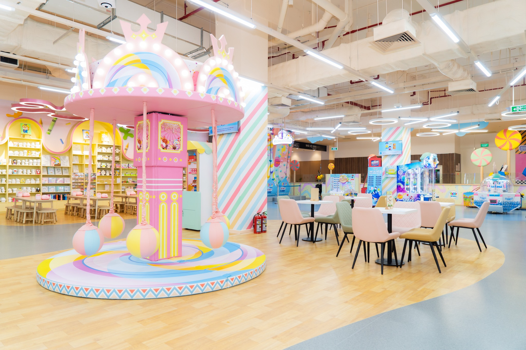 - Game Zone: Khu vực này có nhiều trò chơi điện tử mini như đua xe, bắn bong bóng, câu cá… nhưng nội dung được chọn lọc phù hợp với độ tuổi, vừa mang tính giải trí vừa giúp trẻ rèn luyện phản xạ.